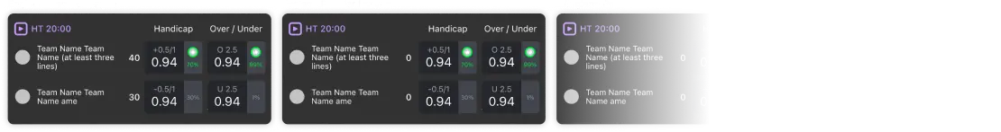 Season regardless, 24/7 simulated sports betting events driven by real matches statistics from various competitions in Football, Basketball, Tennis, Horse racing, and Dog Racing.